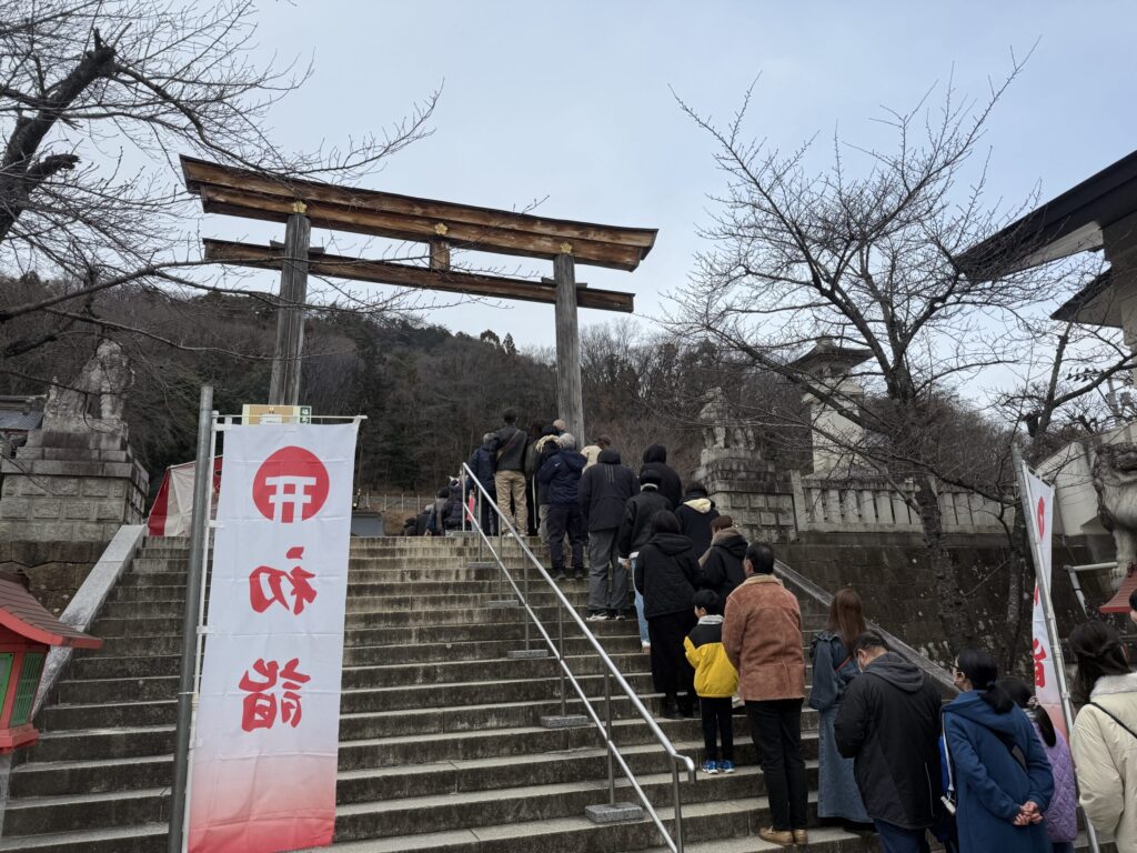 本殿を遠巻きに見て、神に手を合わせて祈り新年をご挨拶をし、礼をして立ち去ります。