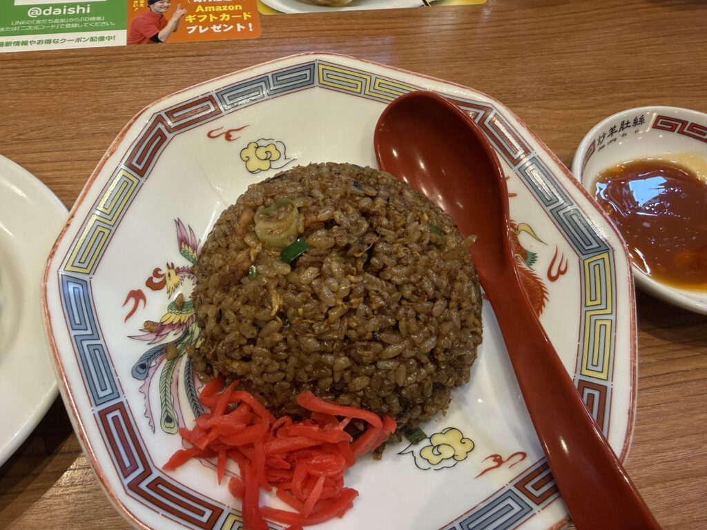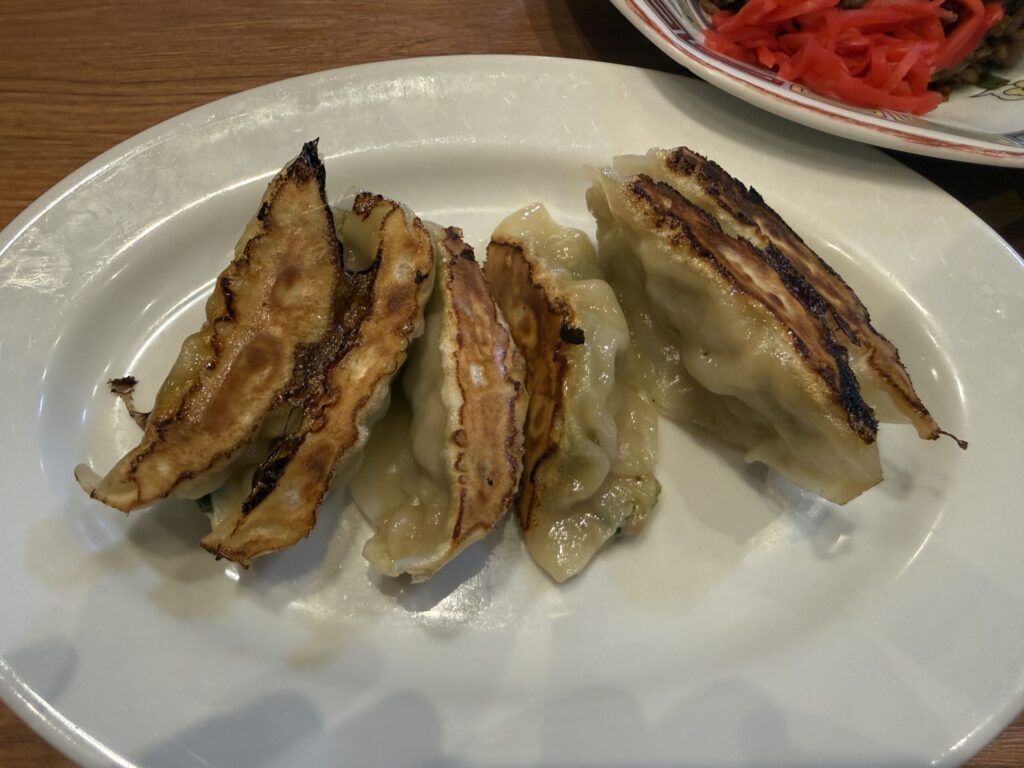 焼き餃子と黒半チャーハンのセット↑