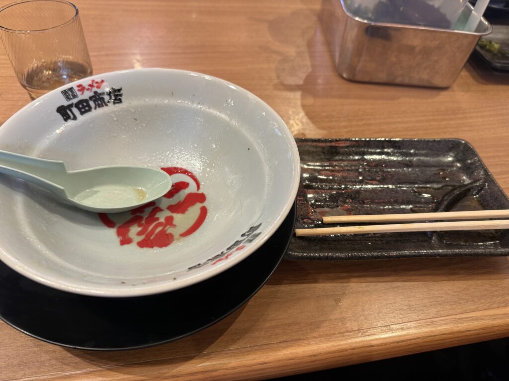 町田商店ではスープまで飲み干すことを「完まく(かんまく)」と呼ぶそうです。
