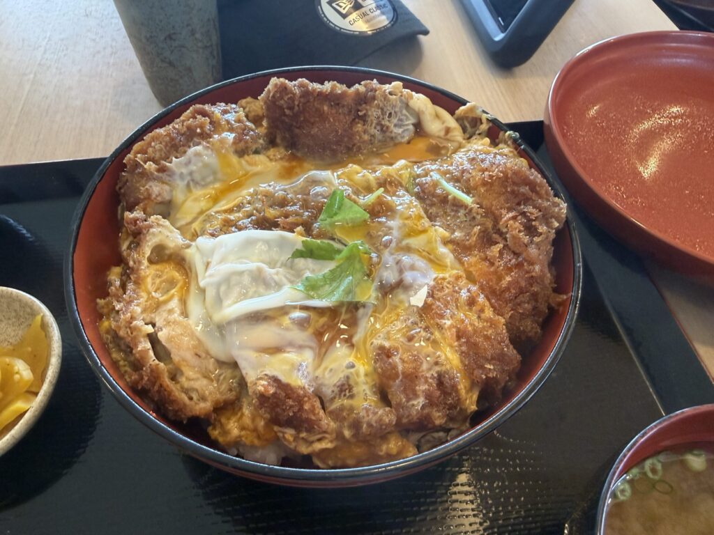 衣サクサクで中はジューシーのロースカツを、ふわふわトロトロの玉子でとじられています。